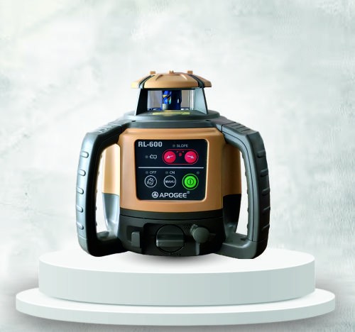 Laser Transmitter emits a stable, 360° rotating laser beam that defines a perfectly level reference plane over the entire working area.