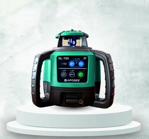 Laser Transmitter emits a stable, 360° rotating laser beam that defines a perfectly level reference plane over the entire working area.